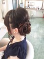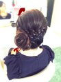 編み込みでアップにして、カールをお花のようにまとめてみました☆
