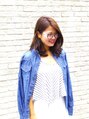 ミディアムの長さにカットしてゆるく巻いて仕上げました♪無造作にスタイリングしてやわらかい雰囲気に☆カラーはアッシュにパープルをプラスして艶と深みのある色に♪
