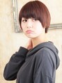 リップラインのマッシュボブにカットしたあとに襟足を短めにします。頭の丸みを矯正します。カラーは明るめのアプリコットアッシュで軽さと透明感を。