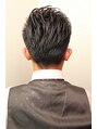 サイドをツーブロックに、バックも短く刈り上げ、全体にニュアンスパーマをかけて七三、無造作に動きをつけます!オールバックにかきあげワイルドに!ビジネスシーンでも好感度アップ!束感ショート、マッシュ、トラッドなんでもご相談下さい!アシンメトリー