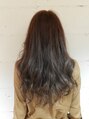 アゴラインから裾にかけてパーマをかけた、ゆるさが絶妙なウェーブをオン☆重めベースに毛先を少しだけ軽くしてからランダムパーマをかければ、ほどよい抜け感が。カラーはシナモンベージュで柔らかな艶をプラス。