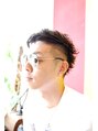 ツーブロックのサイドからえり足は5mmから2mmの刈上げ。毛流れに沿って、全体にピンパーマをかけてワイルドに!メリハリのツーブロックで一気に夏モードに♪(用賀 桜新町)