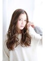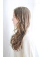 顔まわりをリバースに巻かれた、小顔に見せるミックスカールです。透け感のあるグレージュがより柔らかさを出します。