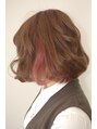 ラベンダーアッシュのベースに耳周りから襟足にかけて一度ブリーチし、レッドバイオレットを乗せてダブルカラー。スタイルが重ためのボブなので、アクセントになります!巻いたり耳かけしたり、ふとした時に見えてワンスタイルでも表情が豊かになります♪
