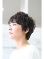 大人ぽくオフィスで使えるウェット仕上げ、くせ毛を活かした軽いカジュアル仕上げも両方OK。耳かけOK。フェミニンなイメージも残しつつ、簡単にスタイリングできる、小顔シンプルショート。カラーは、グレーベースのベージュ系シナモンカラー