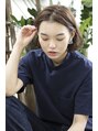 ざっくりとわけたセンターパートからひらりと落ちる前髪に毛先にニュアンスパーマ。ボブにハネ感もいれるのが耳のしたで動くのが可愛さのポイントです。