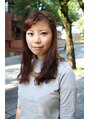 毛先にランダムなパーマでフェザーな感じにロングフェザーボブは軽さがあつてフェミニン流し前髪でピュアな!印象~ヘアーカラーはレッド系で・・・