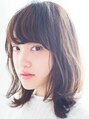透け感でやすいに間引きながら毛先に動きのあるミディアムスタイル。ツヤのある柔らかなカール感でヘルシーに。