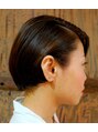 ツヤのあるタイトなボブ。片方を耳に掛けることで大人な女性を演出。