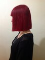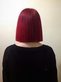 ブリーチで軽く色素を抜いた髪にマニックパニックの「ヴァンパイアレッド」をオン!情熱的なイメージのレッドも、カットでストレート感を強調する事でクールな印象に☆