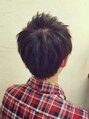 ショートレイヤースタイル。耳周り、襟足はすっきりと。毛先に束感を出しながらナチュラルな高感度アップのスタイル