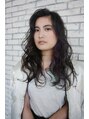 全体をローレイヤーでカットし、カラーのベースをダークブラウンでナチュラルに片耳をかけたラインにパープル、モスグリーン、バイオレットアッシュの三色をMIXして、バングアップのラフなスタイルに!