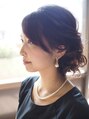 全体的に左サイドにポイントとして髪をまとめ正面からでも見えるようにアレンジしてます!このアレンジは大人可愛いをテーマにキッチリしすぎに気をつけ、全体を崩すことで柔らかい雰囲気が出るようなヘアです♪気に入ってくれた方は一度担当させてください!