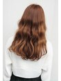 カットのベースは重めのローレイヤー。艶と潤いが欲しい髪に、ケラスターゼのトリートメントでしっかり内部補修。仕上げは32ミリのカールアイロンを使用し、髪の表、裏に交互にアイロンを入れリッジを効かせた大きな波ウエーブでフェミニンな印象に。