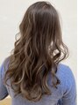 伸ばしかけの前髪が女性らしさを引き出すウェーブのロングスタイルです!大きめのゆるめカールで色気のある感じとカジュアル感の両方を引き出せるスタイルになります。ハイトーン、ダークトーンどちらとも相性ばっちりです☆