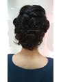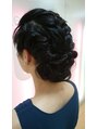 コンパクトにまとめて欲しいというオーダーでしたので、編み込みを程よくゆるませながら、下の方でまとめました。年齢を問わず似合うアップスタイルです。