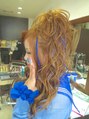 ハーフポニーテールをスジでチラしました。下ろした髪はミックス巻きに