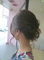 トップをスジ盛りにしてサイドに集めた毛束をカールを残しながらチラしました