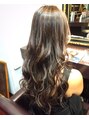ミランダカー風に顔周りを太めにハイライトをオン!残りは細かめで巻いた時も動きが見えやすく華やかになるようにウィービングを入れて、上からピンクベージュをのせました。