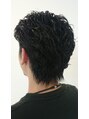 ツーブロックに、バックに流れるワイルドなパーマスタイル