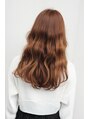 カットのベースは重めのローレイヤー。艶と潤いが欲しい髪に、ケラスターゼのトリートメントでしっかり内部補修。仕上げは32ミリのカールアイロンを使用し、髪の表、裏に交互にアイロンを入れリッジを効かせた大きな波ウエーブでフェミニンな印象に♪