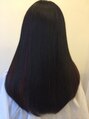 すべて加工なしです、前回、黒染めで部分的にスライシングという カラーの技法を使いブリーチで色を抜き。。。今回は、スライシングのとこにマニックパニックの。。。赤系。。。をかぶせました。ホイル二枚ですがかなり効果が出ます。。。是非。。。笑