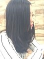 ミディアム~セミロングの長さにオススメ!重めのラインだけどルーズカールでフェミニンに。フロントはセンターパート。カラーはアッシュ系ブラックで大人可愛いを楽しめる!
