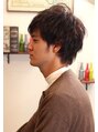 クセを生かした無造作ヘアー。ツーブロックがお勧め。サイドを刈り込むことによって、髪が伸びてきてもサイドが膨らまない。髪が堅く、クセ毛の方には特におススメ。トップにボリュームを付け、全体的に動きを出すことで、さわやかなイメージに。