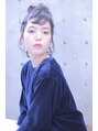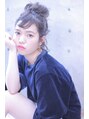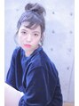 ミディアムの長さをトップでまとめた定番のお団子スタイル♪