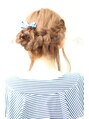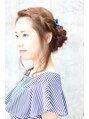 右フロントからフェイスライン方向と、右バックサイド方向に裏編み込みをしていく。左耳の後ろあたりで2つの編み込みを一緒にして毛先まで三つ編みする。その毛束をクルクルと時計回りに巻いておだんごを作れば出来上がり♪髪飾りをつけると可愛さUP!!