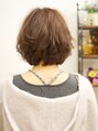 肩上のショートボブに柔らかいパーマで動きをつけました。パーマ戻しムースをもみ込むだけで簡単にスタイリング出来るのでお手入れが苦手な方にもオススメです☆髪質に応じて、エアウェーブかデジタルパーマをご提案させて頂きます。