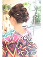 古典柄の可愛らしい振袖には、あえてボリュームを出しすぎず下目でまとめて上品なヘアースタイルに(^^) 成人式にも下目セット、オススメです!!