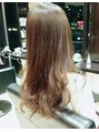 ロングレイヤーのパーマスタイル。黒髪から明るめのベージュにして柔らかい髪質にチェンジ!