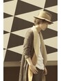 強めカールと透け感のあるスモーキーなカラーで異国の雰囲気に。男女どちらにもはまる、レトロなスタイルにしています。