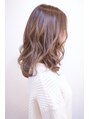 長めの前髪をリバース巻きで仕上げた大人可愛いセミロングスタイルです。表面にはレイヤーをいれてコテで巻いたときに動きを出しやすいようにしています。カラーは、重たく見えないように明るめのナチュラルブラウンで染めています。