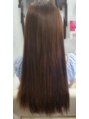 髪の量の多いお客様でしたがボブからロングに大変身されましたぱっつんラインを馴染ませcutで微調整させて頂きました。