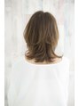 表面のトップと顔周りを包み込むようにカットし、鎖骨ラインのミディアムスタイルです。パーマは毛先巻きと中間巻きにしてミックスパーマをかけました。カラーは、溶け込む9レベルのマロンブラウンで柔らかさを