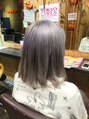 ホワイトに近いぐらいにブリーチをして淡いグレーアッシュとラベンダーのカラーをいれました!2回ブリーチしていないと出にくいホワイティーなカラーです!!