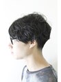 刈上げボブ、ニュアンス程度にカールをつけ、無造作な動きが出るようにしています。どこか大人の雰囲気漂うエイジレスなヘアースタイル。