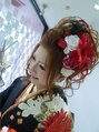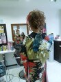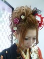 振袖の豪華さに負けないくらいのデカポンパにミックス巻きのフワフワアップにしました。