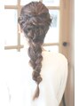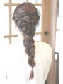 最近良く見かけるロングヘアーならではの、ヘアアレンジ。所々髪の毛を引っ張り出して、ルーズ感をプラス。写真では分かりにくいですが、立体感、華やかさをプラスする為、仕上げにシルバーのラメスプレー☆