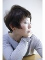 アシンメトリーのショートスタイルです。収まりの悪いえりあしも収まりよくカットしてあります。右サイドから前髪にかけて短くなり左サイドは少し長めになっています。カラーは透明感のあるアッシュ系です。
