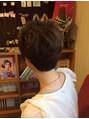 クセを生かしたショートスタイル。前髪だけ部分ストレートでクセを抑えてあえて短めにしたのがポイントで、おでこを見せることによって明るく可愛い印象を引き立たせました!