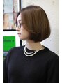 大人かわいい王道の前下がりのワンレンボブ!きっちり分け目のセンターパートは可愛い女性の永遠の定番!カラーは9トーンのアッシュブラウン!乾かすだけでキマるのでスタイリングが楽です!