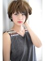 カジュアルに見えすぎないように落ち着いたブラウン系のカラーと、トップにあてたパーマで動きのあるショートボブです