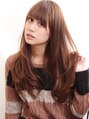 柔らかいイメージのベージュカラー。Aラインロングの毛先にゆるい内巻き。厚めにとった前髪で甘辛な雰囲気。 これで世の男性たちもYOUにゾッコン!(笑)