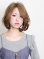 ダブルカラーとコラーゲンカラーでツヤと雰囲気のある色味に。長めの斜めバングをかきあげるとふんわり印象的な目元に。