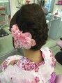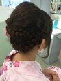 編み込みで女性らしく、でも甘すぎないスタイルにしました。浴衣のセットや結婚式のセットに最適です。