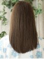 輝くようなツヤ感ではなく、髪の内側から輝くようなヘルシーなツヤ感が特徴。重さと動きのバランスも絶妙なスタイル。 全体的に縦長のシルエットで作られたスタイルは前髪の切り方がカギ!!重めだけど流して軽やかさもアピール。