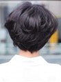 ギリギリにつめた襟足から45°の前上がりにカット。 前髪まで同じ角度で切り、ラウンドさせてマッシュに! 毛先に丸みを出し、毛先は先細りになるようにスライドカット。 髪色は7トーンのダークカラーへ。